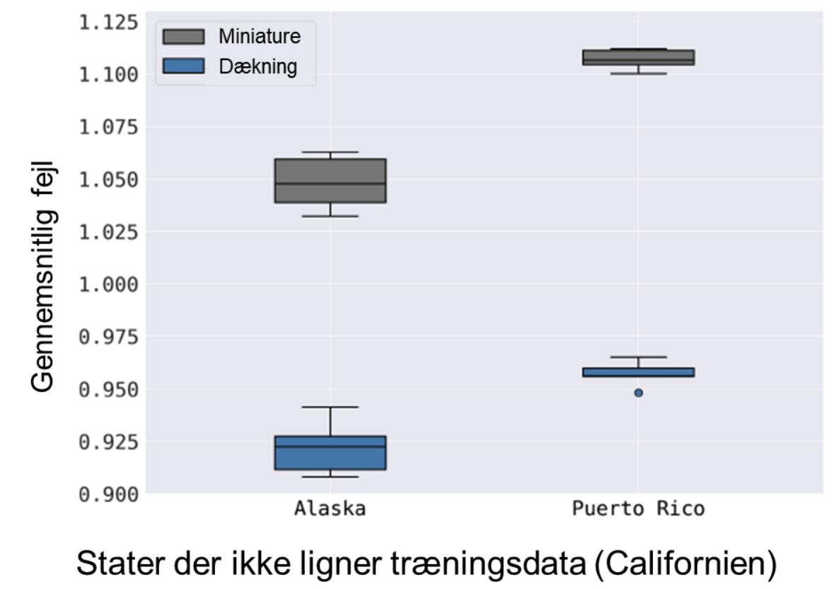 For at sammenligne modellerne, undersøgte hun hvor gode de var til at forudsige folks indkomst i andre stater end Californien. Her testede hun dem både på stater, der ligner Californien, og på stater, der ikke gør. At en stat henholdsvis ligner og ikke ligner træningsdataene er bl.a. målt ud fra om dem, der bor i staten, har samme alder, uddannelsesniveau og indkomst.