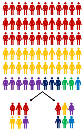 Hvis for eksempel 50% af befolkningen tilhører en bestemt gruppe så skal 50% af datasættet bestå af folk fra denne gruppe. Men da datasættet skal være mindre end befolkningen, kan grupper som består af få individer ende med at blive skåret fra.